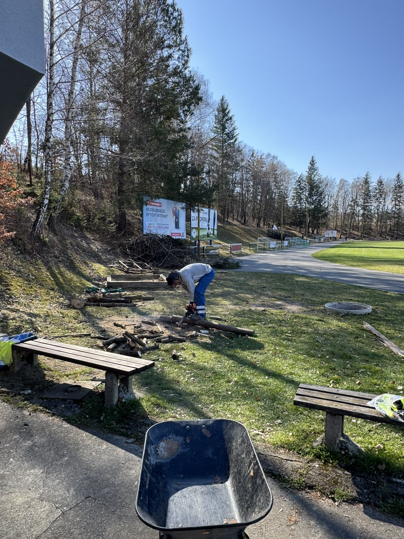 • Příprava dřeva: Řezalo se a uklízelo dřevo, aby byl areál připravený na provoz a nic nepřekáželo v bezpečném pohybu po zázemí.